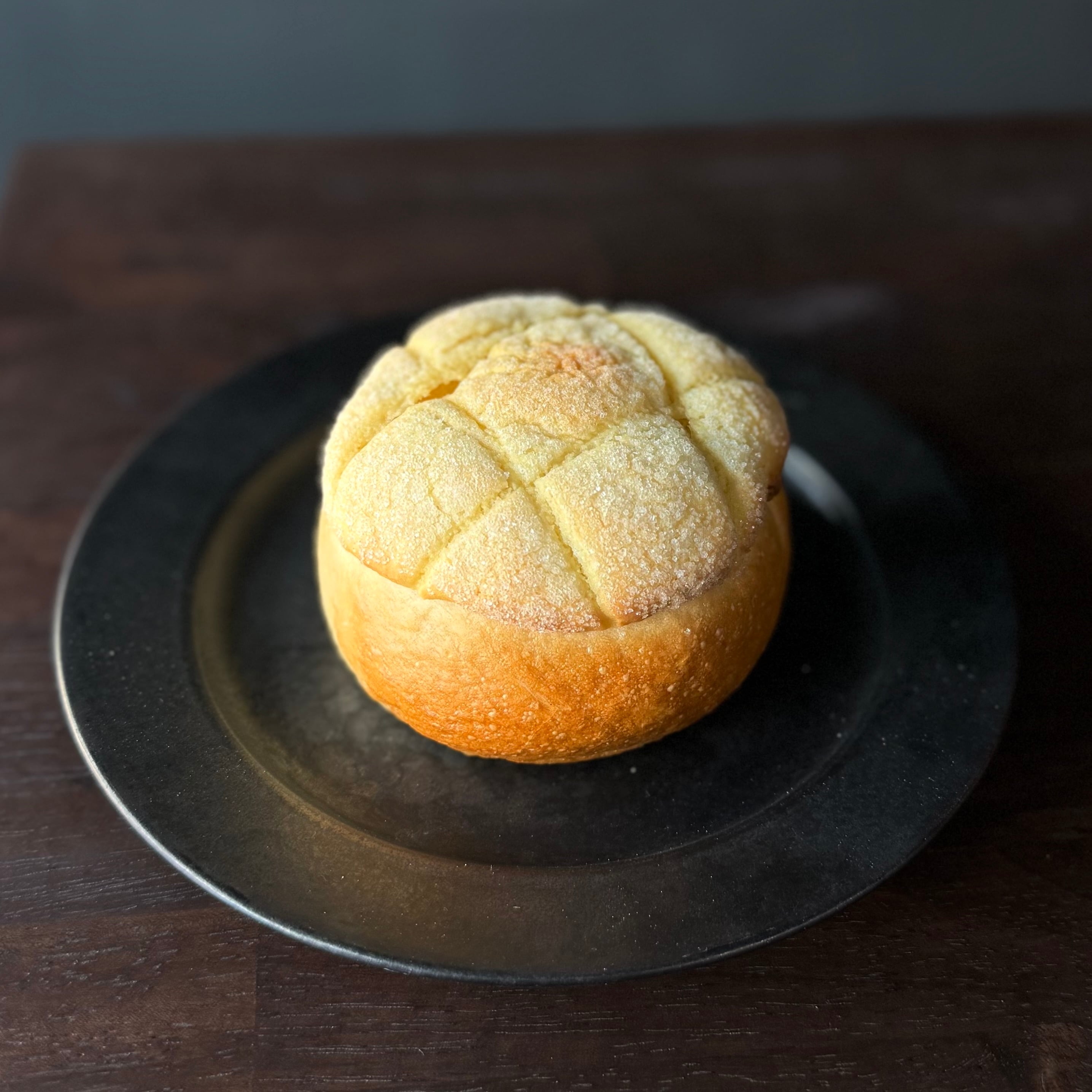 キャラメルチョコチップを包んだ生地にクッキーを乗せて焼き上げた、メロンパン風のベーグルです。